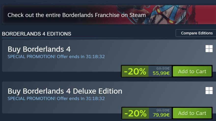 Borderlands 4 ist am 11. September 2025 erschienen und wird auf Steam bereits mit einem Rabatt von 20% angeboten. Mit diesem Schritt reagiert Gearbox wahrscheinlich auf die schleppenden Verkäufe des Spiels: Borderlands 4 soll sich in seiner Releasewoche insgesamt 2,5 Millionen Mal verkauft haben, obwohl es auf Steam, PS5 und Xbox gleichzeitig erschienen ist. Borderlands 3 schaffte es 2019, trotz seiner Zeitexklusivität im Epic Games Store, auf 5 Millionen Einheiten innerhalb von fünf Tagen.