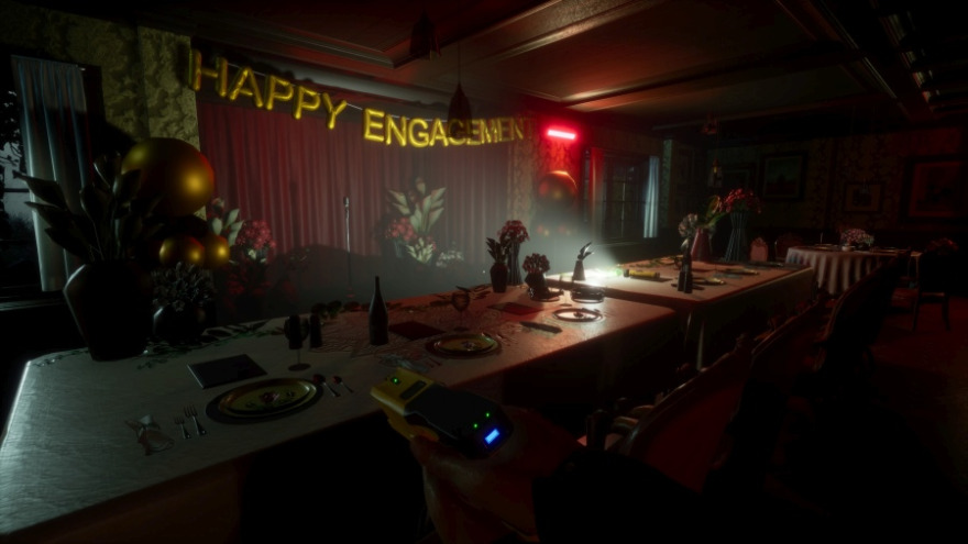 Das Gameplay von She’s Leaving besteht einerseits aus Detektivarbeit und andererseits aus Flüchten. Bei seiner Detektivarbeit nutzt Dalton eine Elektroschockpistole mit integrierter UV-Lampe, die Blutspuren im Haus sichtbar macht. Findet Dalton Blutspuren, dürfen wir als Spieler diese analysieren. Die Entwickler schreiben: "Basierend auf den realen Praktiken forensischer Analysten haben wir Mechaniken entwickelt, die es dem Spieler ermöglichen, die Wahrheit hinter den Beweisen zu verstehen und zu entschlüsseln, die er findet." Das klingt cool, in der Praxis werden uns aber einfach nur drei verschiedene Auswahlmöglichkeiten eingeblendet. Früh im Spiel entdeckt Dalton beispielsweise einen blutigen Handabdruck an einer Wand und wir müssen uns entscheiden: Ist das Blut an die Wand gespritzt, handelt es sich um ein Fließmuster oder hatte da jemand direkten Kontakt mit der Tapete? Komplexer wird die Detektivarbeit selten, und auch andere Aufgaben strotzen nicht gerade vor Kreativität. So müssen wir lediglich Schlüssel und Sicherungen suchen, um Türen zu öffnen, oder Zahnräder finden, um einen Aufzug in Gang zu setzen.