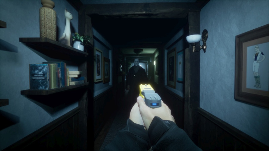 Wenn wir als Dalton falsche Entscheidungen treffen, leidet sein Geisteszustand unter den Fehlschlägen. Dalton wird dann depressiv und schlürft nur noch lethargisch durch die Korridore und Zimmer von Haywood. Das ist fatal, denn Dalton ist nicht allein im Haus. Ein Serienmörder mit einer Totenmaske bewegt sich wie Mr. X in Resident Evil 2 als unsterbliches Monster durch das Anwesen und würde Dalton nur allzu gerne ins Jenseits befördern. Berühren wir den Kerl auch nur flüchtig, heißt es sofort "You Are Dead". Die einzige Möglichkeit, sich gegen den Stalker zu wehren, besteht darin, ihn mit dem Elektroschocker brutzeln zu lassen. Dadurch gewinnen wir wenige Sekunden, um uns aus dem Staub zu machen und in einem grün markierten Safe-Room zu verstecken. Wieso Dalton keine Verstärkung ruft, und wieso er weiter nach Beweisen für einen Mörder sucht, der sich ihm mehr als nur aufdrängt? Das weiß wohl nur er allein.